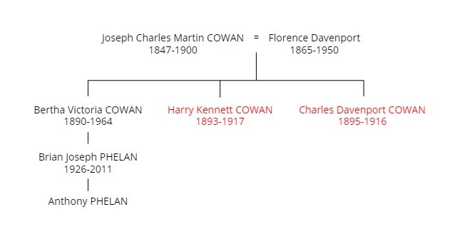 While Ken and Charles' younger brother Arthur was too young to serve in the Great War, he became a victim of the influenza epidemic which swept Australia following the war in 1919. He survived as Florence's only son (another brother Alfred had died as an infant in 1899) but remained a bachelor, meaning that today there is no-one left in the family named Cowan. Dad was always close to his grandmother Florence, and I think it is important that we never forget the devotion to duty, and ultimate sacrifice of Harry Kennett and Charles Davenport Cowan.